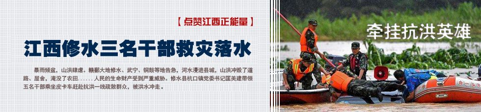 事發經過:當晚,受修河水位上漲影響,杭口鎮受災嚴重,該鎮黨委書記匡美建、副鎮長鄧旭、大學生村官程扶搖三人趕赴現場組織疏散民眾,途中不幸被洪水沖走。