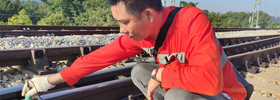 連日來,江西持續高溫,在京九鐵路大動脈上卻依舊活躍著有一群專門給鋼軌做探傷檢測的鐵路工人。
