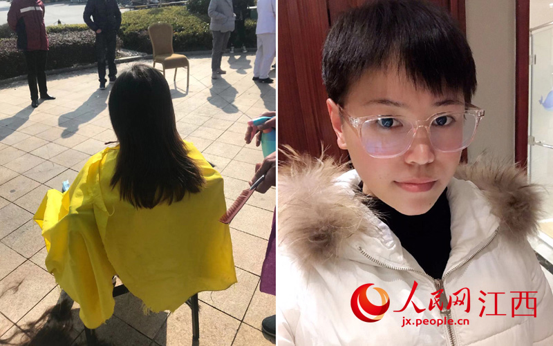 出征前,方小梅將自己心愛的長發剪掉。徐軍國/攝