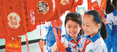 江西省贛州市大余縣的學生們在猜燈謎。葉功富攝(人民視覺)