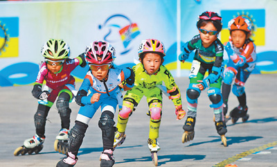 3日,遼寧省沈陽市,小朋友在參加遼寧省暨沈陽市第二屆全民冰雪運動會速度輪滑比賽。王瑞忠攝(人民視覺)
