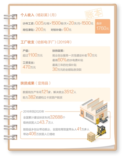 “工資按件計,1條5分錢,多干多得嘞!”楊彩英手上的活計一刻沒停,聊起收入頭頭是道:“縣里政策好,崗位津貼200元;廠里有配套,對標補助60元;自己勤快點,一個月到手工資兩三千元不成問題!卑畈视⒃趦,長富廠區的21名建檔立卡貧困戶已全部脫貧摘帽。