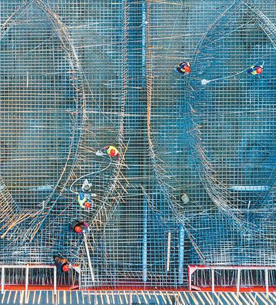 1月11日,安徽省蕪湖市繁昌區峨溪河排洪新站工程工地上,工人在進行泵室底板混凝土澆筑。