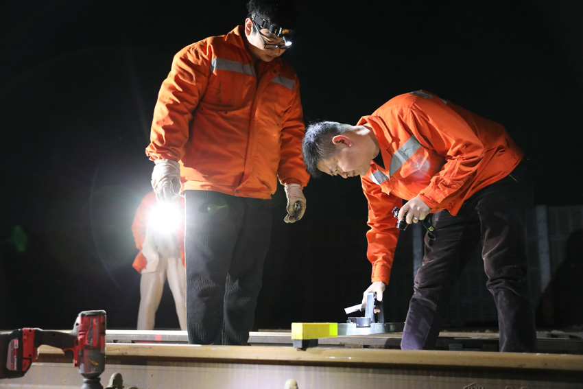 2月1日凌晨一點,在漳平西站柵欄門外,中國鐵路南昌局集團有限公司龍巖工務段的陳志鋒與同事們正清點機具,為“天窗”作業做著最后的準備工作,清點工機具必須精確到一個螺帽,因為任何遺漏的物件都有可能被吸入高速運行的動車底部,引發動車故障!疤齑啊泵钕逻_,陳志鋒帶領“精調師”們用軌檢儀和塞尺對鐵路線路的高低、軌向等數據進行檢測。當“精調師”們檢查發現一處道岔尖軌與基本軌不密貼,立即著手對造成不密貼的頂鐵進行打磨處理,最終消除尖軌與基本軌不密貼,使鋼軌回歸健康。春運期間夜間溫度很低,作業過程中精調師們必須克服寒冷、困乏,集中精力,爭分奪秒在“天窗”時間內完成檢測和修復,保證列車運行平穩,提升旅客乘坐動車的舒適程度。(陳霏滸)