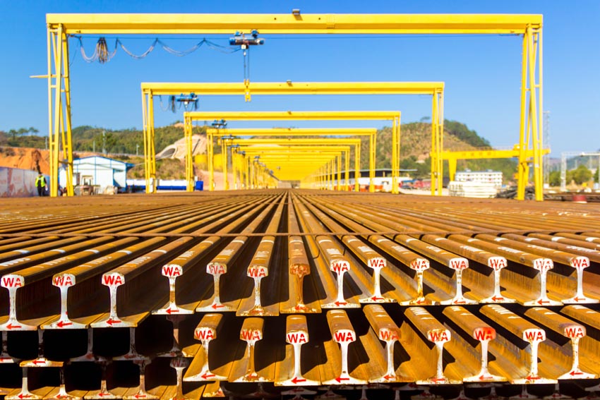 圖為定南站長軌基地中整齊擺放的鐵軌。鄒陽 攝