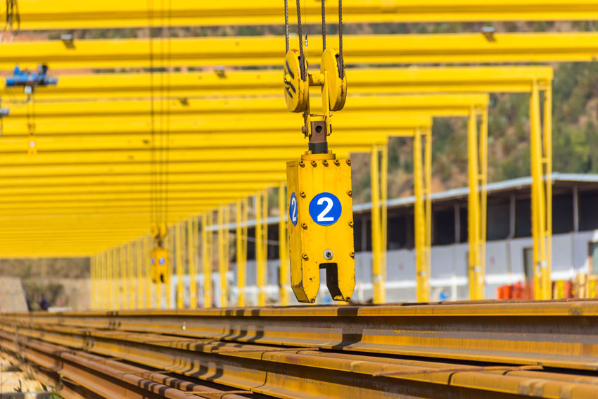 圖為正在進行吊運鋼軌前的調試。鄒陽 攝