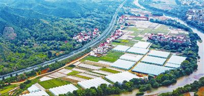 近年來,江西省贛州市大余縣全力推進鄉村振興,努力實現產業興旺、環境宜居、村民富裕的目標,不斷增強群眾幸福感。圖為大余縣青龍鎮河南村,現代農業產業基地和民居、公路、青山相輝映,構成一幅美麗的鄉村畫卷。
