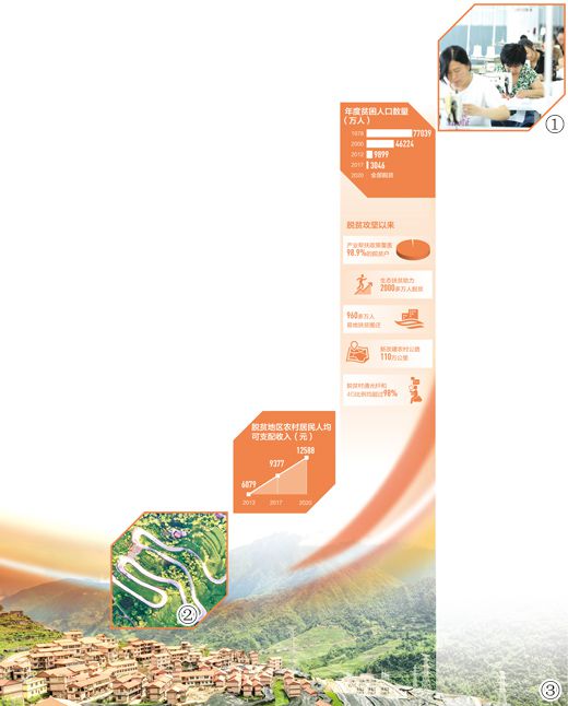 2021年2月25日,習近平總書記在全國脫貧攻堅總結表彰大會上莊嚴宣告:“經過全黨全國各族人民共同努力,在迎來中國共產黨成立一百周年的重要時刻,我國脫貧攻堅戰取得了全面勝利,現行標準下9899萬農村貧困人口全部脫貧,832個貧困縣全部摘帽,12.8萬個貧困村全部出列,區域性整體貧困得到解決,完成了消除絕對貧困的艱巨任務,創造了又一個彪炳史冊的人間奇跡!”