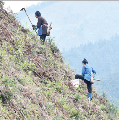貴州省錦屏縣春蕾林場,當地農民正在植樹。
