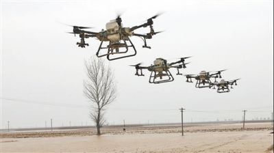 10月27日,陜西大荔縣官池鎮東陽村,無人機對大田實施小麥飛播。
