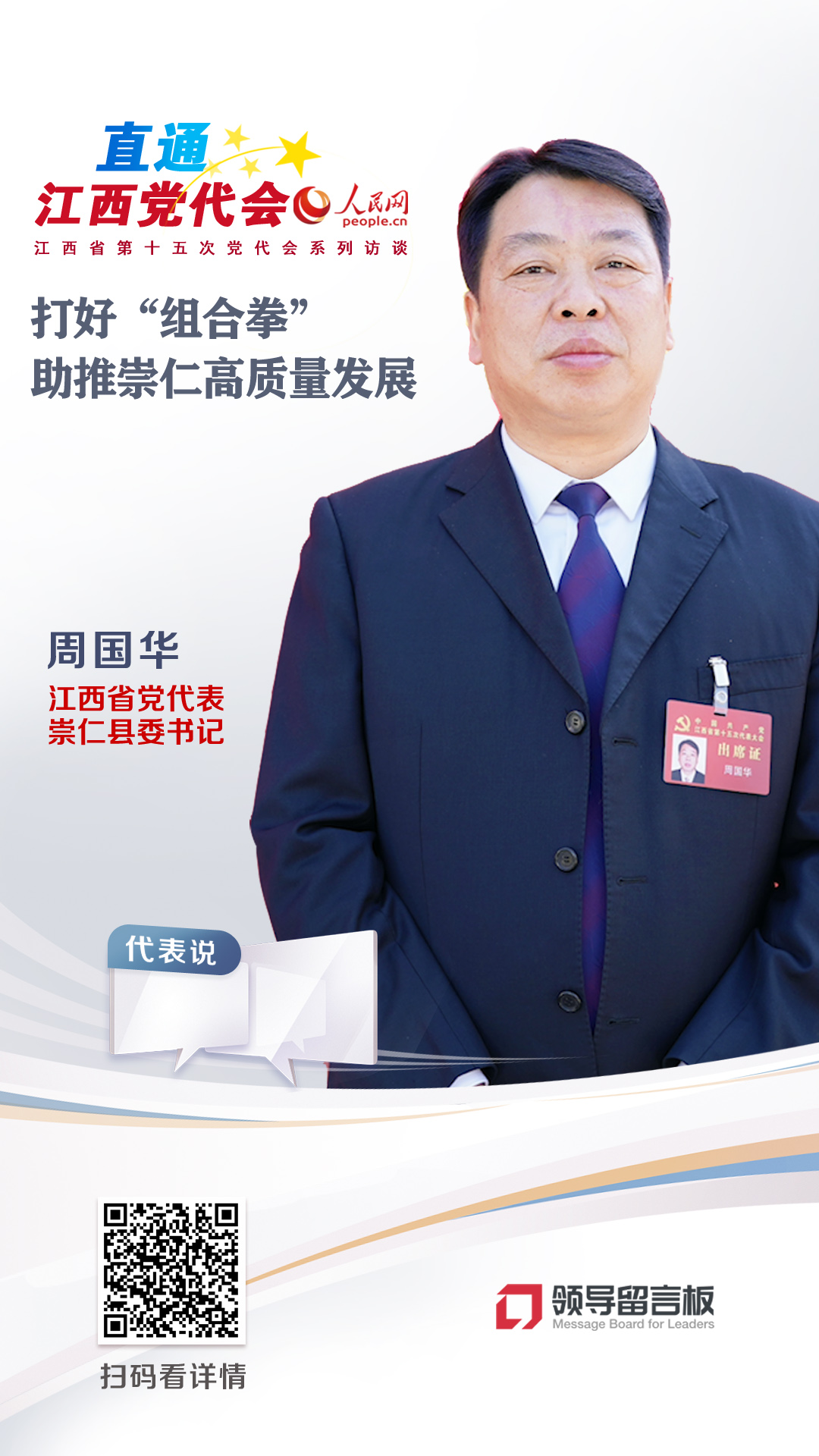 【編者按】昂首奮進新征程,接續奮斗再出發。在江西省第十五次黨代會召開之際,人民網推出“作示范 勇爭先 對話黨代表”系列訪談節目,邀請黨代表話心聲、謀發展。今天邀請到周國華代表,以下為訪談實錄: