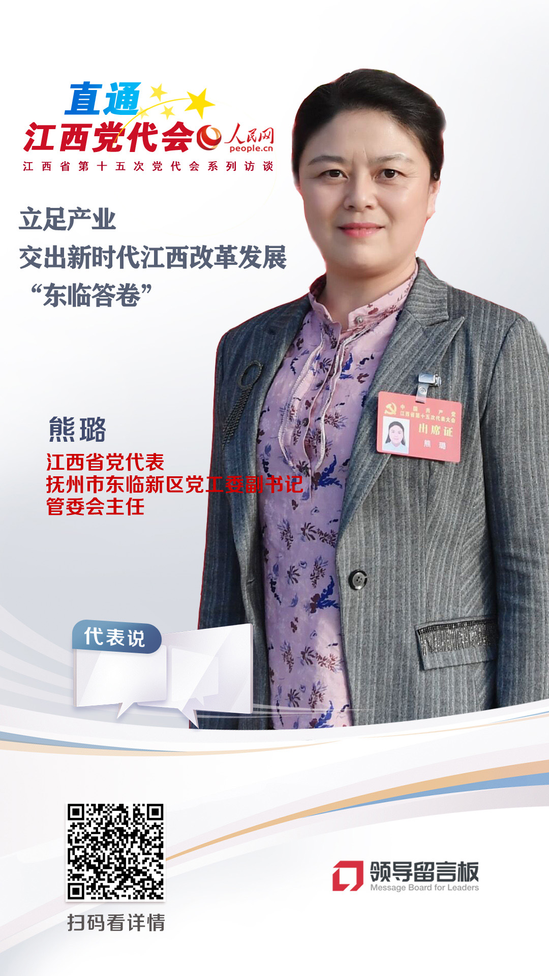 人民網:中國共產黨江西省第十五次代表大會已經開幕,易煉紅同志代表中國共產黨江西省第十四屆委員會作的報告,吹響了未來五年江西發展的號角。請問熊璐代表,撫州東臨新區將如何貫徹落實省十五次黨代會精神?