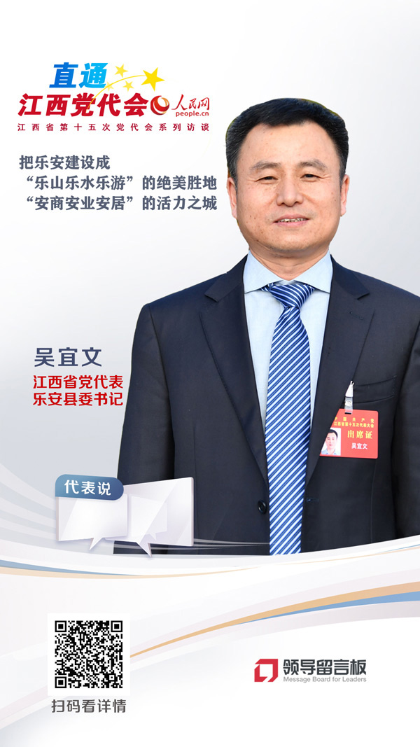 人民網:在江西省第十五次黨代會開幕大會上,易煉紅同志代表中國共產黨江西省第十四屆委員會作的報告,吹響了未來五年江西發展的號角。請問吳宜文代表,樂安縣將如何貫徹落實省十五次黨代會精神?
