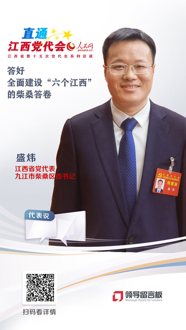 人民網:在江西省第十五次黨代會開幕大會上,易煉紅同志代表中國共產黨江西省第十四屆委員會作的報告,吹響了未來五年江西發展的號角。請問盛煒代表,九江柴桑區將如何貫徹落實省十五次黨代會精神?