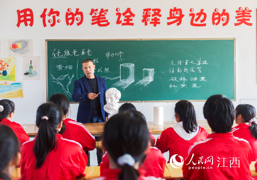 永新縣龍田鄉龍田中學,老師在給學生上美術課。李意奕攝