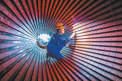 在國家能源集團位于江西省的一處電廠,檢修人員檢查發電機。丁怡婷 胡俊英攝影報道