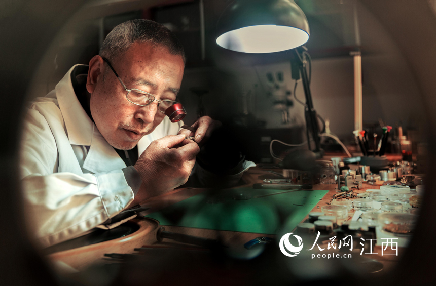 圖為永新縣龍田鄉榮天村鐘表維修師蘭志強在維修鐘表。周亞茂攝
