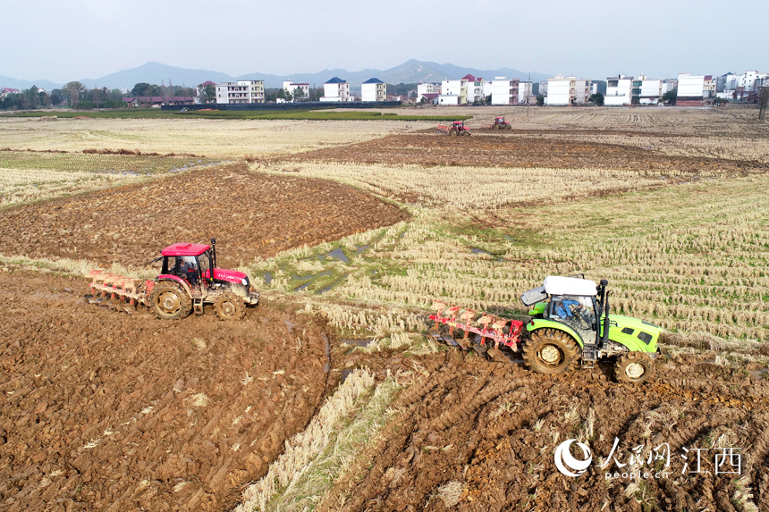 人民網南昌1月21日電(毛思遠)1月19日,江西省撫州市東鄉區小璜鎮小璜村的農田里,旋轉犁正在對農田進行機械化作業。隨著氣溫回升,江西省撫州市東鄉區各地紛紛拉開春耕備耕序幕,田間地頭呈現出一派忙碌景象。
