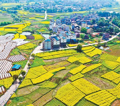 3月15日,江西省吉水縣金灘鎮嶺頭村油菜花盛開,景色秀美。近年來,吉水縣立足生態農業發展,將美麗鄉村建設和產業發展有機結合,改善鄉村人居環境。