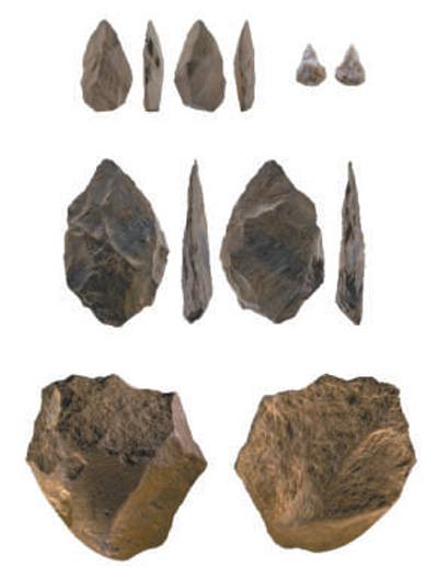 皮洛舊石器時代遺址三個階段的石器文化類型圖。