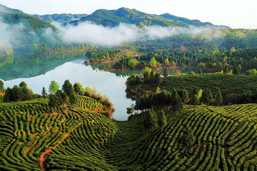 春分時節,航拍資溪縣高田鄉城上村千畝白茶種植基地。吳志貴攝