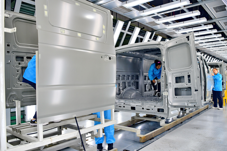 高職畢業生成為技能型工人,在車間加工新能源商用車車廂。朱海鵬攝