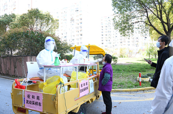 江西援滬二隊隊員在社區做核酸檢測采樣