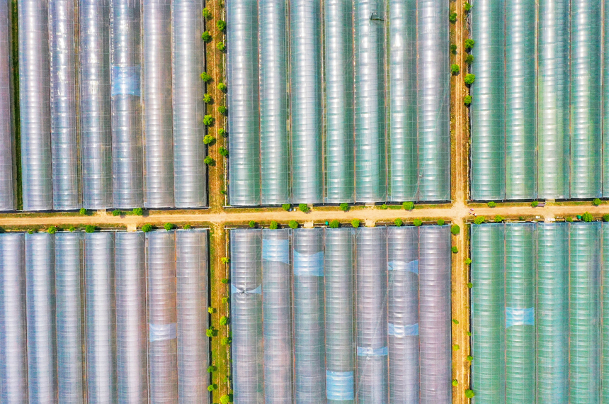 大棚、田地、道路縱橫交錯,構成一幅美麗的田園風光畫卷。尹其奇攝