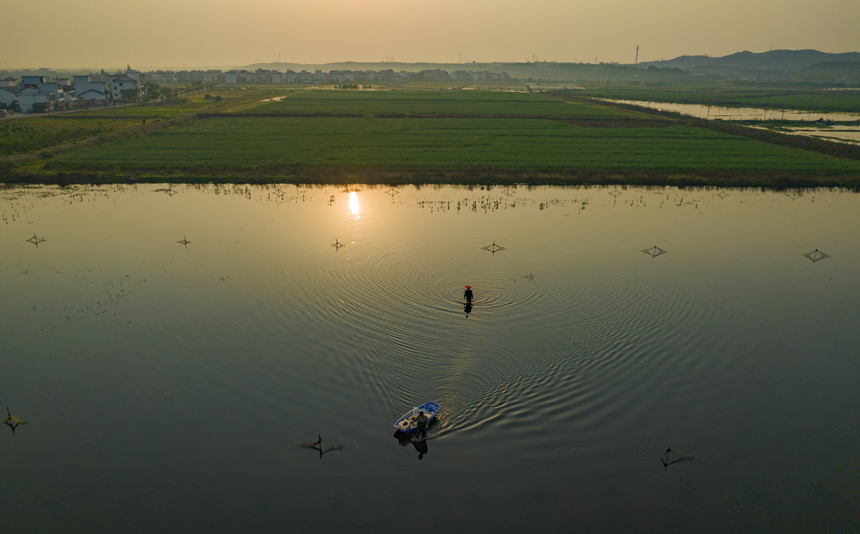 農戶起籠捕獲小龍蝦供應市場。趙春亮攝