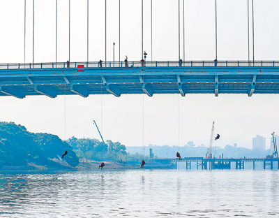近日,江西省贛州市消防救援支隊調集支隊抗洪搶險專業隊消防員80余名、舟艇15艘、消防車19輛、專業救援裝備200余件(套)投入模擬救援訓練,重點對舟艇編隊行進、水面搜救、水下搜救、排澇搶險等六大類20個課目進行練習,提高消防員在抗洪搶險中的應急救援本領。圖為消防員在訓練垂降救援。