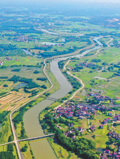 近年來,江西省吉安市泰和縣興建水利灌溉設施,構建四通八達的生態水系,確保糧食生產用水,助力農業豐產豐收。圖為5月4日,泰和縣塘洲鎮,蜿蜒的河水流經早稻田。