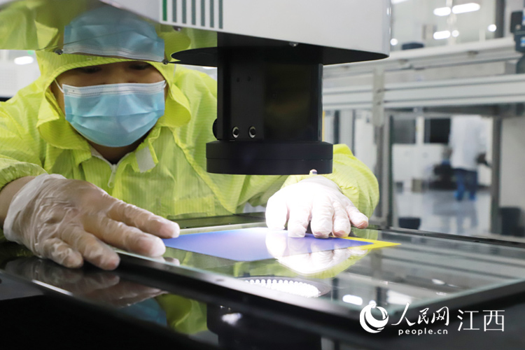 近日,在江西宜黃縣工業園區中弘晶能科技有限公司智能化生產車間內,工人正在操作設備趕制訂單。尹文兵攝