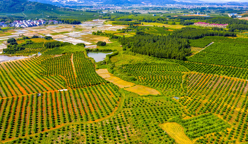 郁郁蔥蔥的苗木基地、蜜橘種植園交錯成景。趙春亮攝