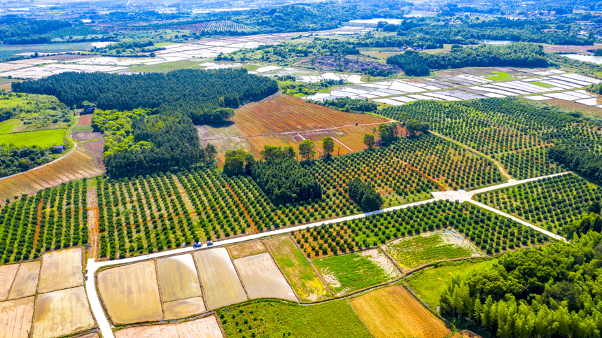 郁郁蔥蔥的苗木基地、蜜橘種植園交錯成景。趙春亮攝