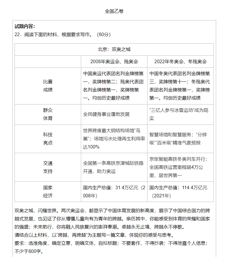 人民網南昌6月7日電(時雨)7日上午,2022年江西高考的語文科目考試結束,今年江西高考作文主題是:跨越,再跨越?忌Y合材料進行答題寫作。