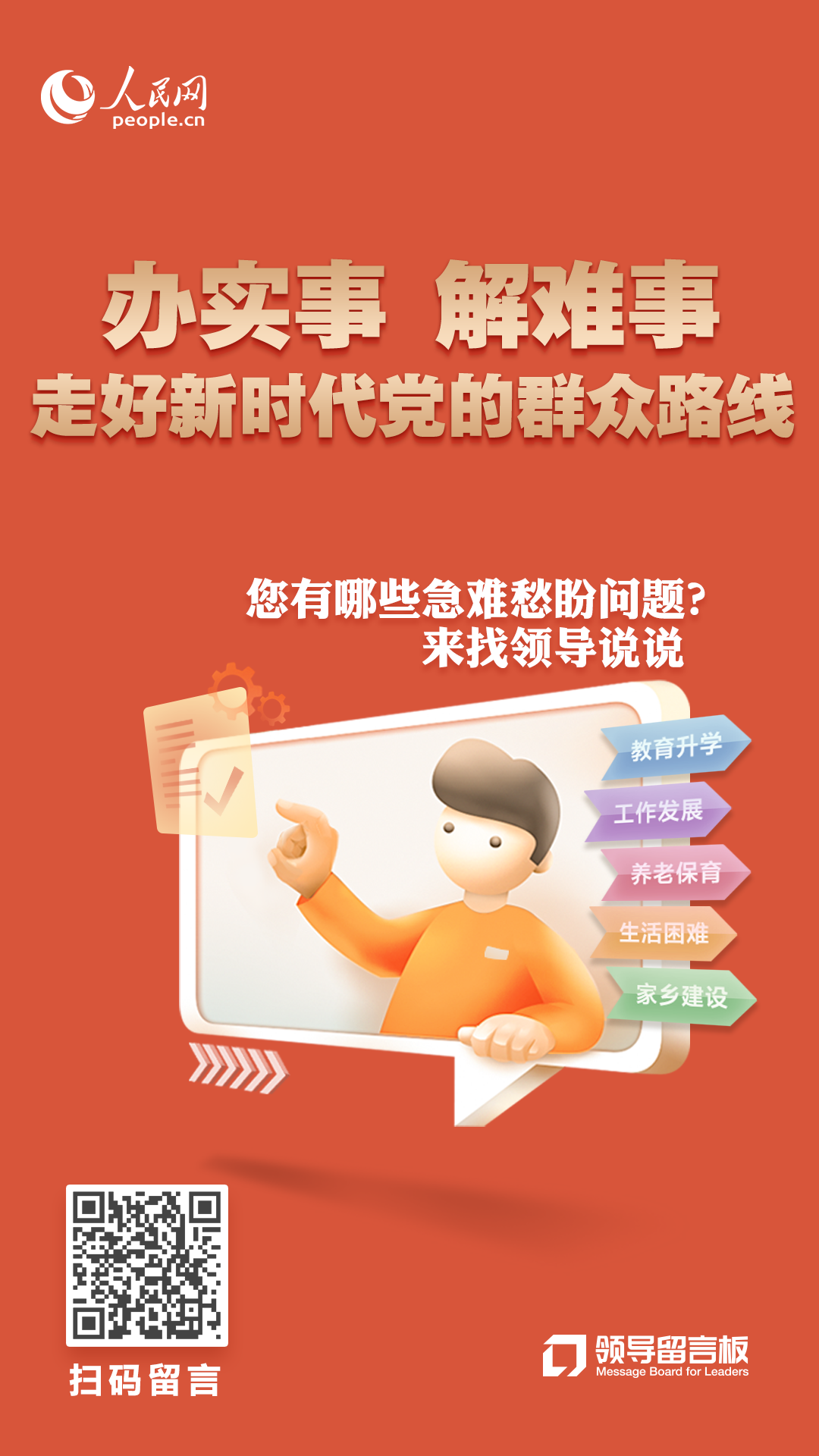 群眾利益無小事。您有哪些亟待解決的困難?歡迎來人民網“領導留言板”留言,把您的困難事、煩心事說一說。