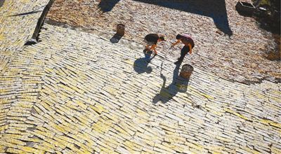 7月10日,在江西省撫州市樂安縣招攜鎮壩上村,農戶搶抓晴好天氣翻曬竹筍干。