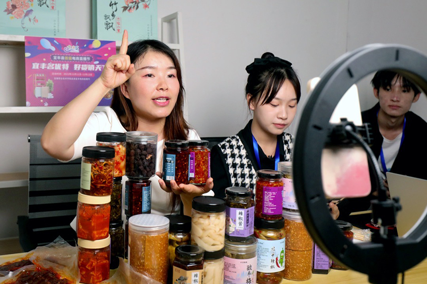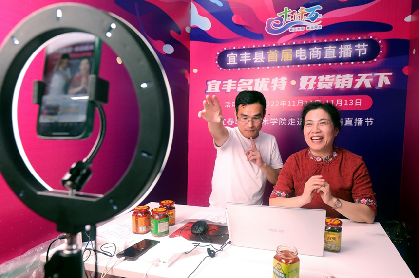 直播間內,電商主播向觀眾介紹宜豐特色產品。何賤來攝