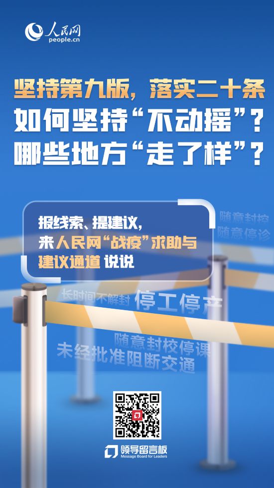 針對各地落實二十條情況,哪里“走了樣”,哪里做得好,您有何意見建議,請來“人民網‘戰疫’求助與建議通道”(點擊進入)說說。