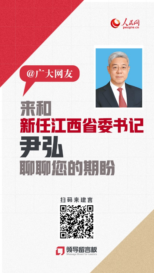 日前,中共中央決定:尹弘同志任江西省委委員、常委、書記。任命消息發布后,不少群眾在人民網“領導留言板”給尹弘書記留言,反映自己的所思所盼,暢談對江西未來發展的期許。