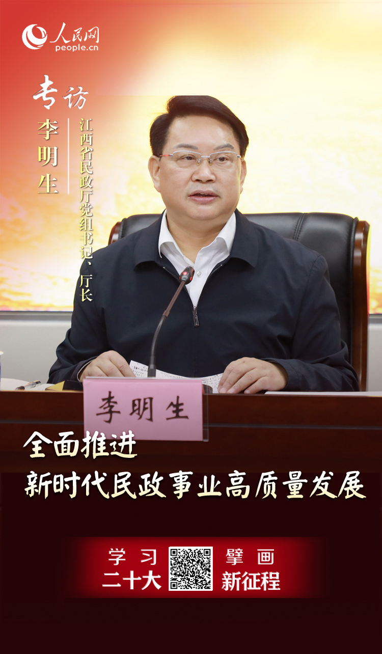【編者按】為深入學習宣傳貫徹黨的二十大精神,把思想統一到黨的二十大精神上來,把力量凝聚到黨的二十大確定的各項任務上來,人民網江西頻道聯合江西省委網信辦網絡新聞傳播和評論處推出“學習二十大,擘畫新征程”系列訪談節目,聚焦江西各地各部門如何精心組織“學”,廣泛深入“講”,結合實際“干”,推動黨的二十大精神落實到發展的各方面,以踔厲奮發、勇毅前行姿態奮進新征程。近日,江西省民政廳黨組書記、廳長李明生接受了我們的專訪,以下為訪談實錄:
