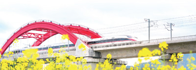 “復興號”高鐵列車在贛深高鐵龍南特大橋疾馳而過。