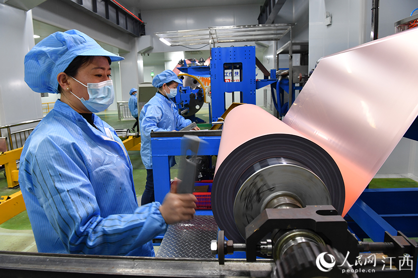 豐城市循環經濟產業園內的企業車間正在生產超薄電子銅箔。人民網 時雨攝
