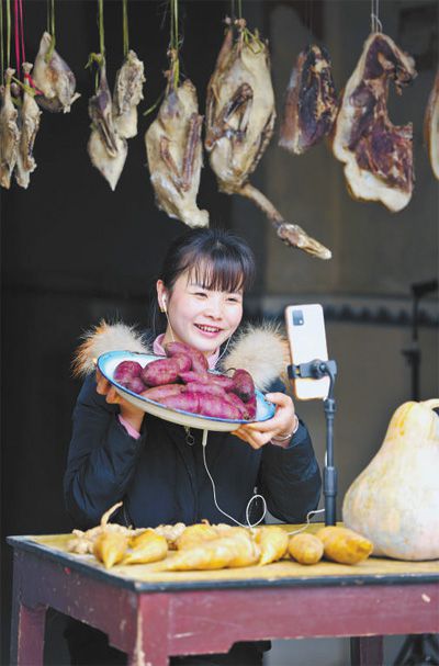 江西省宜春市萬載縣雙橋鎮黃源村,農村電商主播正通過網絡直播銷售農特產品。