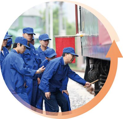陜西省西安市,西安鐵路職業技術學院的老師(右一)正指導學生進行車輛單車檢查實操。