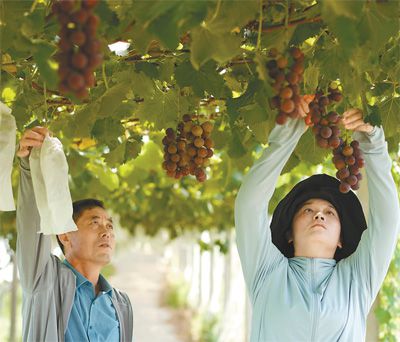 江蘇省句容市茅山鎮丁莊村,葡萄種植能手在采摘葡萄。