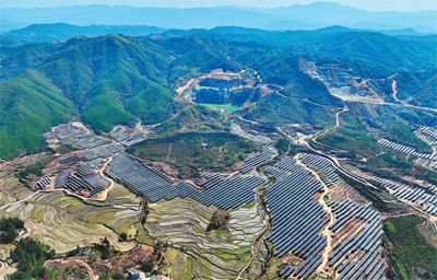 3月22日,江西省贛州市寧都縣石上鎮150兆瓦農光互補光伏發電站,連片的光伏板在陽光下熠熠生輝。