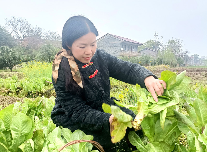 李宜玲在自家菜園勞動。上高縣委宣傳部供圖