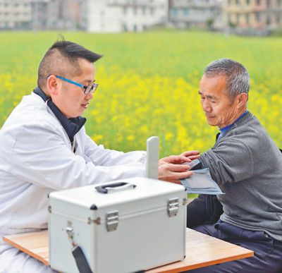 義診現場,周自根一邊為村民們測血壓,一邊詢問他們最近的身體狀況、用藥情況?!爸茚t生定期上門給我們做檢查,叮囑我們用藥、飲食,特別用心?!苯衲?6歲的村民陳仕華說。