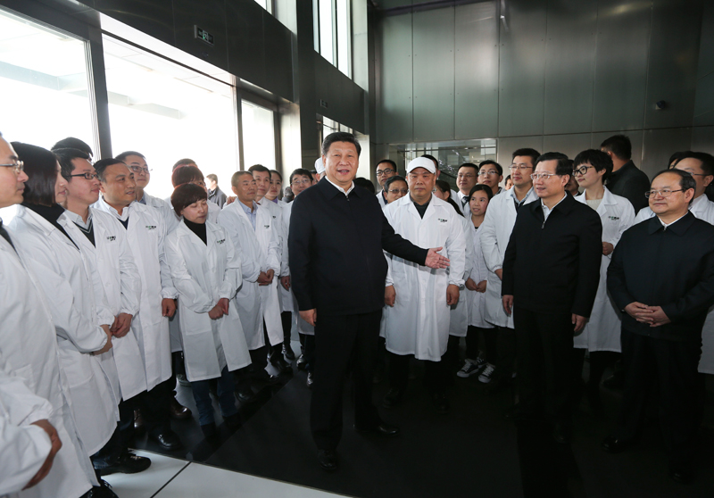 2016年2月3日,習近平在江中集團江中藥谷制造基地考察時同企業科技人員在一起。 新華社記者 蘭紅光攝